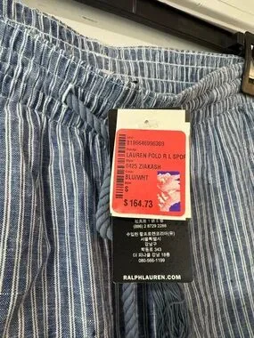 Slender, yarn-dyed pinstripes punctuate the wide-leg silhouette of these drawcord pants from Lauren Ralph Lauren, which are crafted with airy linen for maximum comfort. Beaded tassel cord ends add a playful finishing touch.