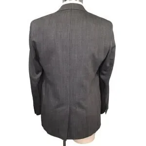 DKNY Sport Coat Men's 42L Gray Wool Herringbone Check Jacket Lined Blazer Career