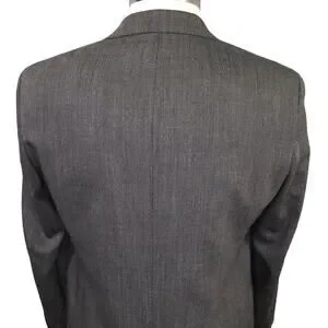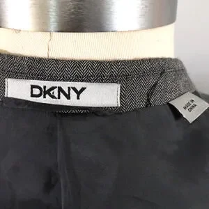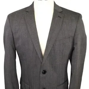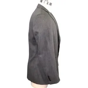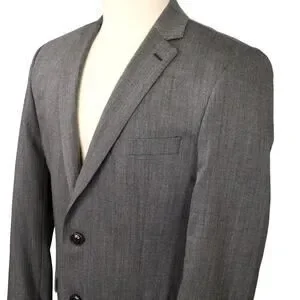 DKNY Sport Coat Mens 42L Gray Wool Herringbone Check Jacket Lined Blazer Career
