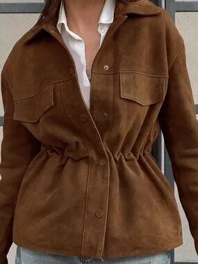 Retro trend fashion high-waisted slimming long-sleeved lapel suede jacket for women, suitable for office wear and versatile. Length of clothing Regular style (garment length: 50cm < length ≤ 65cm)