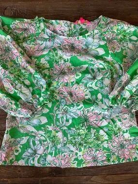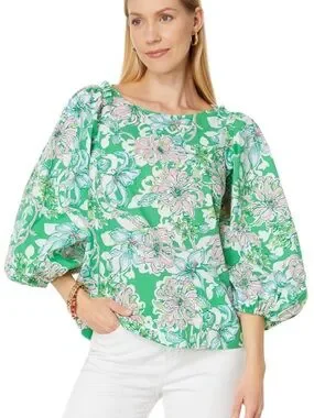 Lilly Pulitzer Barbara cotton puff sleeve pop over spearmint blossom views 10