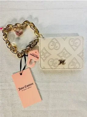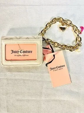 Juicy Couture Wristlet Wallet On A Gold Link Bracelet with Charm