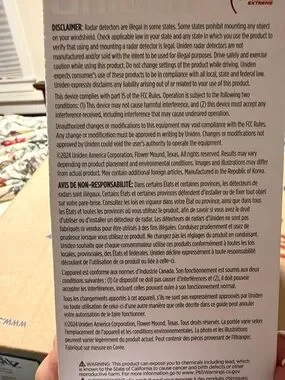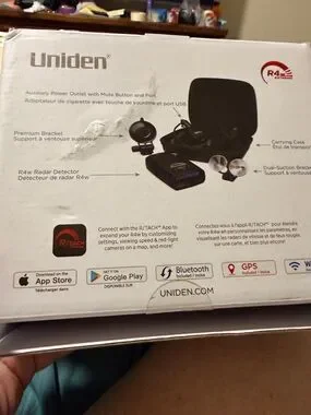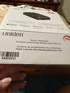 Uniden radar and laser detector in black. Built-in GPS and Bluetooth for real-time alerts. Easy-to-use controls and clear display. Designed for long-range detection and driver awareness.