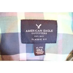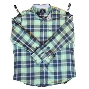 American Eagle Mens XL Classic Fit Long Sleeve Plaid Button Down Shirt Green
