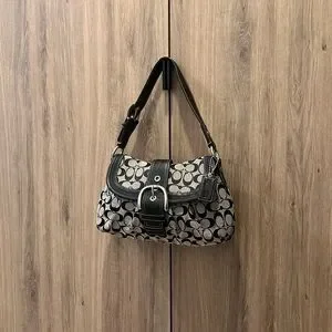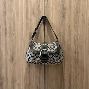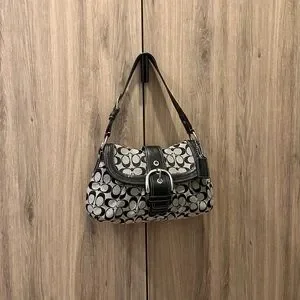 Vintage Y2K Coach F15203 Soho Black Gray Signature Sufflette Shoulder Bag