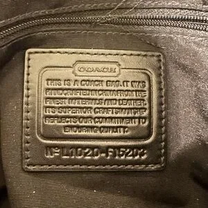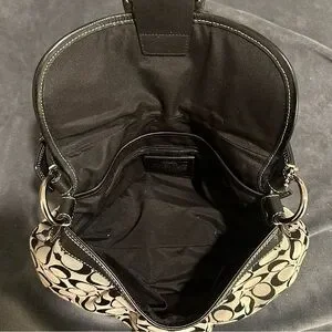 Vintage Y2K Coach Soho F15203 signature sufflette jacquard monogram logo black and grey big buckle larger size pleated shoulder bag with hangtag, leather straps, and silver hardware