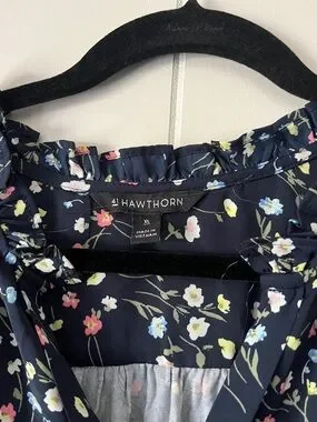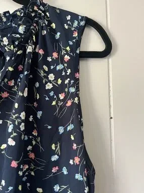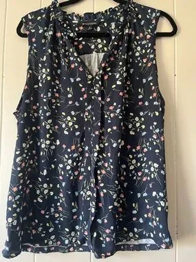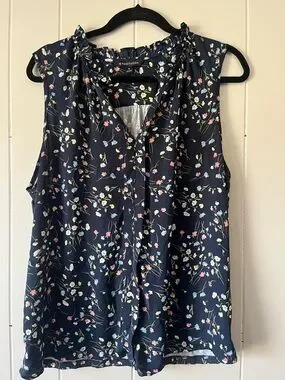 41 Hawthorn Navy Floral Ruffle-Trim Sleeveless Blouse