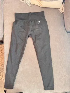 High-rise waistband for support. Stretchy, form-fitting fabric for movement. Subtle Gymshark logo at hip. Sleek, minimalist workout look.