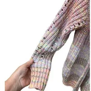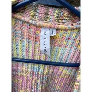 Grace + Karma size S over sized24” and length chunky cotton blend cardigan . Big open cardigan and loose weave. Pit to pit 24” and length is 29”.