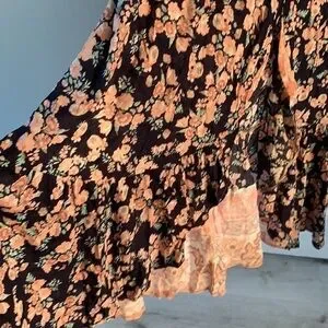 Selfie Leslie Floral Wrap Dress large maxi bohemian ruffle size L cottagecore