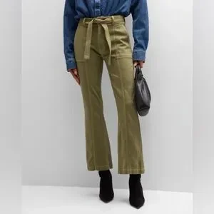 New! Derek Lam 10 Crosby Dean Utility Flare Olive Green Tie Waist Jeans 💚27 NWT!