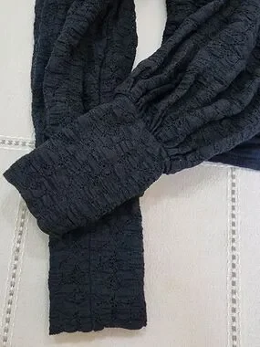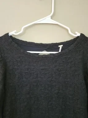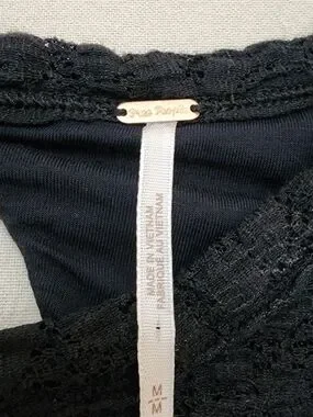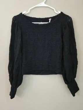 Free People Black Lace Puff Sleeve Long Sleeve Top Women Size M