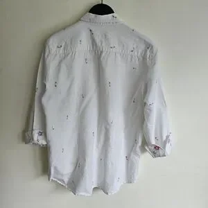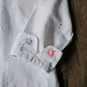 Vintage Talbots white linen blend floral embroidered button-up shirt. Three-quarter sleeves.