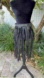 Long black fringe belt with gold-tone snap accents. Leather-look waist strap and flowing fringe. Edgy accessory to layer over dresses or tops.