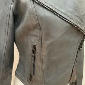It includes two side zip pockets, zipper cuffs, and classic moto details for an effortlessly cool look.