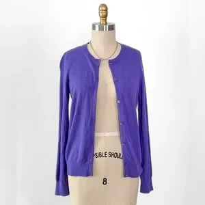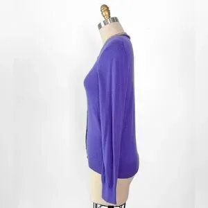 Elegant purple sweater by TSE. Features button-up front. Perfect for layering.