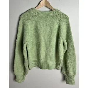 English Factory Green Floral Embroidered Cardigan Size Medium Cottagecore Womens