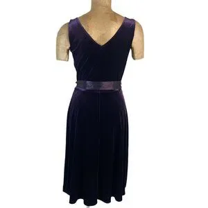 VTG CDC Elegant Stretch Velvet Sleeveless Dress Sz M Purple #236B