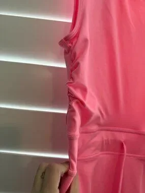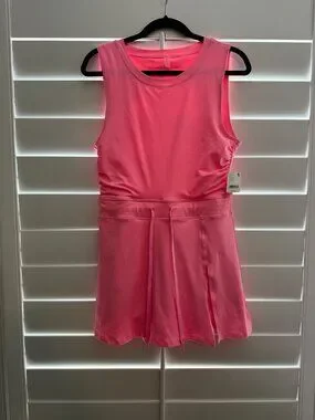 Fitted crewneck mini dress with built in shorts. Stretchy with adjustable waistband. It's a super cute dress I've just never found an occasion or time to wear it.