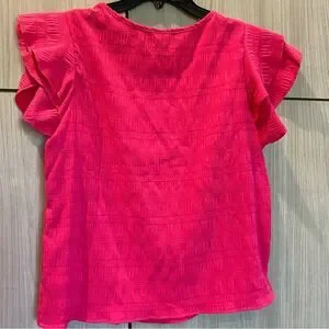 Hot Pink Ruffle Sleeve Top Blouse Flirty Feminine Large