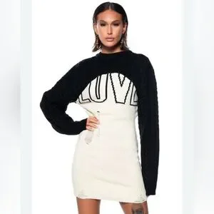 AKIRA Black and Cream LOVE Knit Sweater Dress
