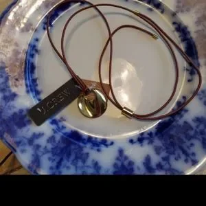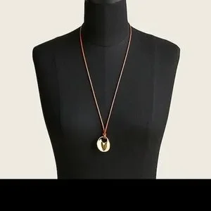 J.Crew Brown Leather & Gold Mirror Charm Necklace BNWT SO 1 LEFT! $70