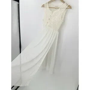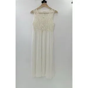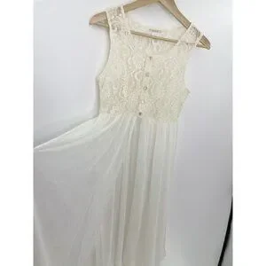 Nicolette Ivory Lace Sheer Bodice Dress Size L Slits Flowy, Fairycore, Flaw