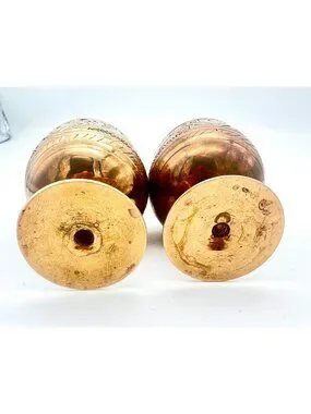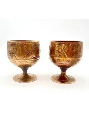 These brass goblets, etched with intricate floral patterns, evoke a sense of timeless elegance. Standing at just 2 inches, they are perfect for adding a touch of vintage charm to your decor or collection. Their golden hue and sturdy craftsmanship make them a delightful addition to any space.