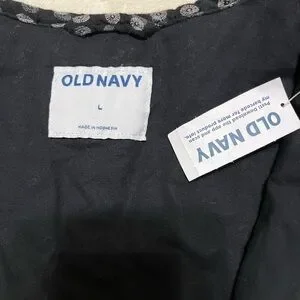 BRAND NEW with TAGS. Old Navy Women’s Geo Quilted Bomber Jacket. Size Large. Black, Navy Blue and White. Full front zip closure. Pierced Collar. On Seam Side Front Pockets. Long sleeve. Measurements laying down flat: Pit to Pit: 23”. Pit to end of sleeve: 17”. Nape to hem: 23”. NOTE: the 1st picture is a stock photo