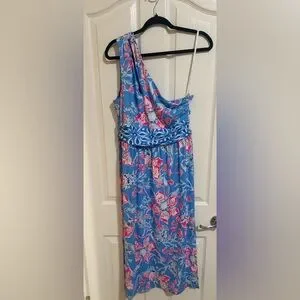 Lilly Pulitzer Blue One-Shoulder Floral Midi Dress