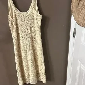 Sleeveless crochet midi dress by Z Supply. Soft cream color with intricate openwork pattern. V-neckline and fitted silhouette. Lightweight and breathable knit. Easy to style for warm-weather looks.