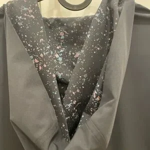 Navy shirt with colorful speckles. Ideal for casual wear.
