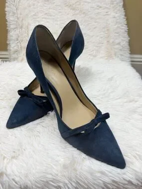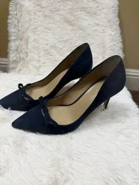 Ann Taylor Navy Suede Pointed-Toe Bow Pumps