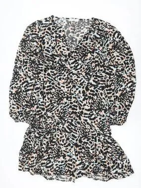 Papaya Mujer Negro Animal Viscosa Mezcla Línea A Talla 10 Cuello en