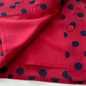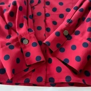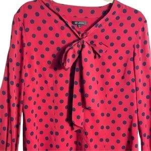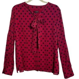 St John Silk Polka Dot Blouse Neck Tie Red Blue Size 12