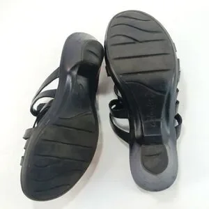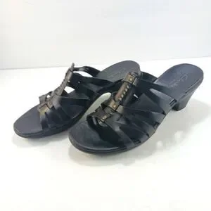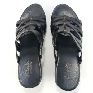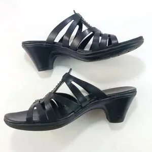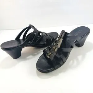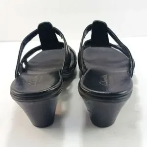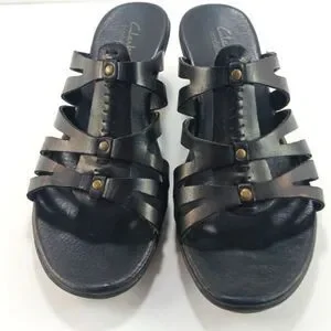 Clarks Bendables Women's Black Leather Strappy Slip- On Sandals Size 7