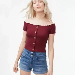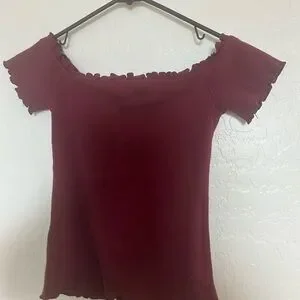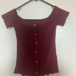 Women’s size small red Abercrombie soft off shoulder bodycon shirt dainty y2k