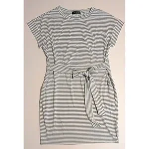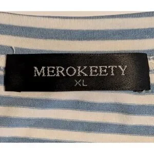 NWOT Merokeety Blue Striped Tie Waist T-Shirt Dress XL Short Sleeve Pockets