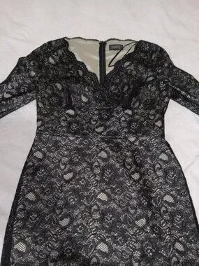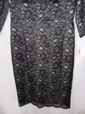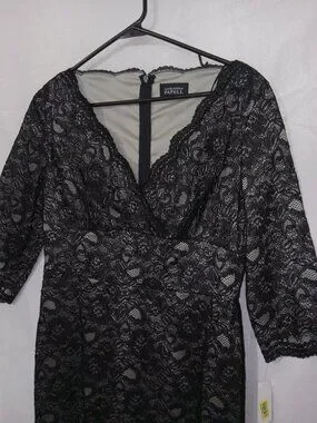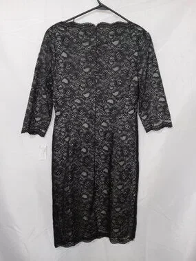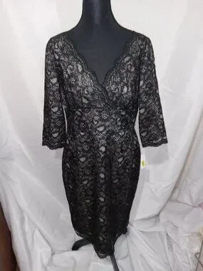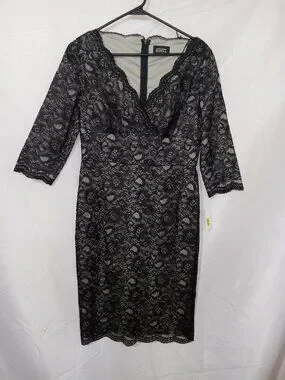 Adrianna Papell Black V Neck Lace Sheath Dress NWT Size 10 Cocktail Party Formal