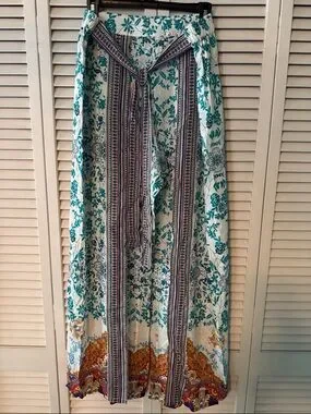 NWT Johnny Was XL Boho Floral Maxi Skirt in Teal & Ivory with Multicolor Border