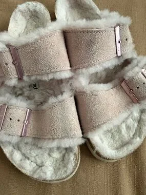 Birkenstock Arizona Shearling Suede Leather Light Rose