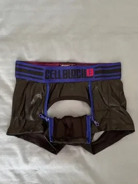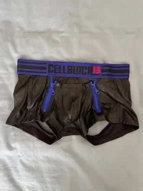 CellBlock 13 PU Leather Jock Brief - Double Zip Pouch - Medium - Black/Blue
