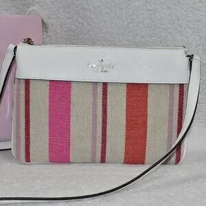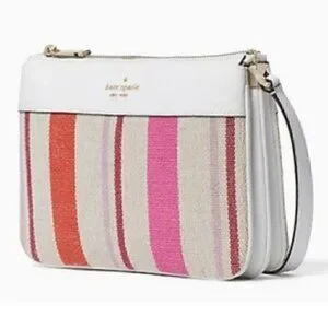 Kate Spade Leila Striped Canvas Triple Gusset Crossbody Pocketbook