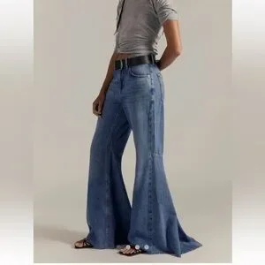 We The Free People Live Wire Flare Jeans Frayed High Voltage Blue 26