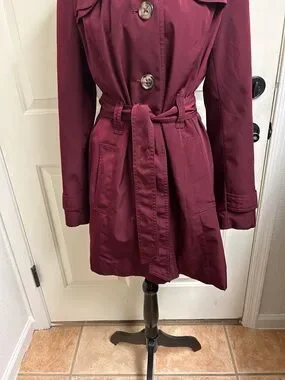 London fog medium maroon trench coat with button details with belt, Size Medium
