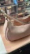 Elegant blush pink pebbled leather. Curved silhouette with subtle gold-tone hardware. Top handle and adjustable shoulder strap.