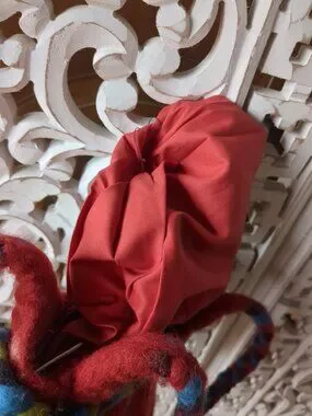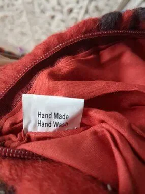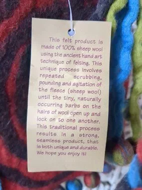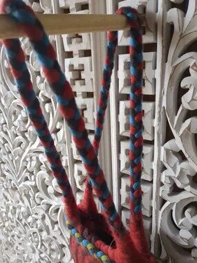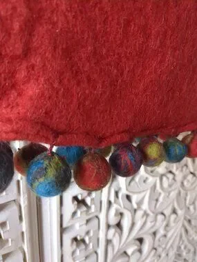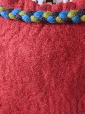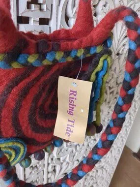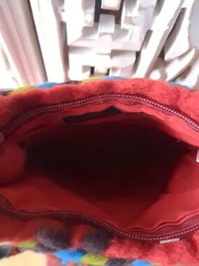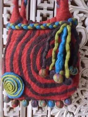 Dark red handmade felted wool purse with various colors of lime green, blues, reds (see picture)...