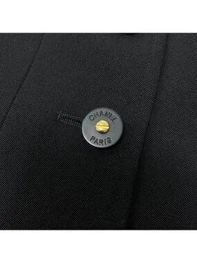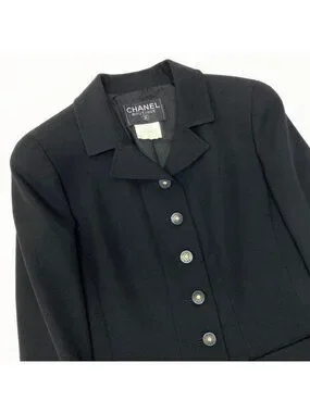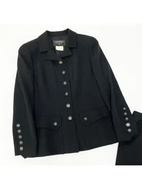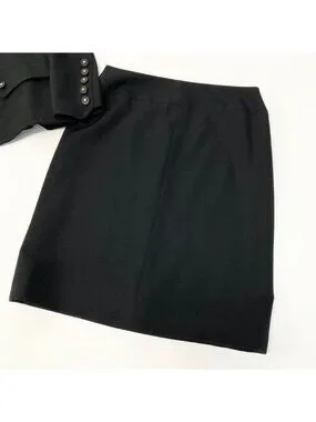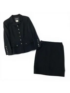 Chanel C Vintage Skirt Set Tailored Jacket 40 Black Silk