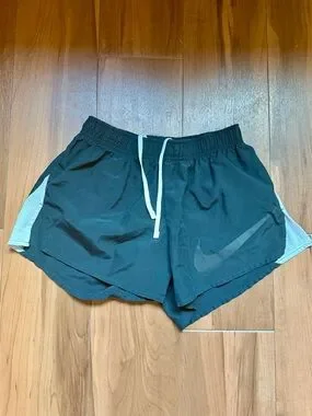 Lightweight Nike training shorts with Dri-FIT fabric. Elastic waistband for secure fit. Subtle logo detail on the interior. Made for workouts, daily wear, and sports. Have underwear lining underneath. Very flattering fit. Have 2 available.
