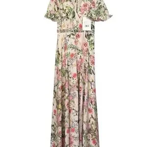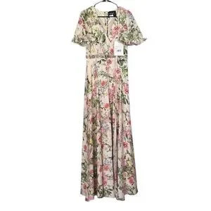NWT MAC DUGGAL FLORAL V-NECK PLEATED MAXI DRESS Size 4